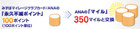 クレジットカードのご利用で貯めた永久不滅ポイントを100ポイント単位で2口以上からANAのマイルに交換いただけます(マイル交換手数料はかかりません)。