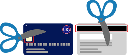 旧カードは、磁気・ICチップ部分をはさみで切って破棄してください。