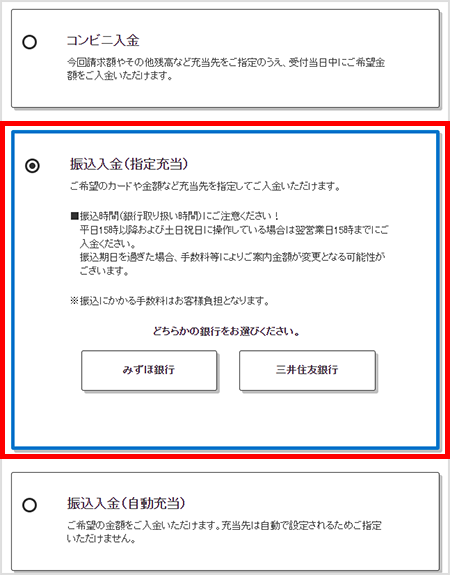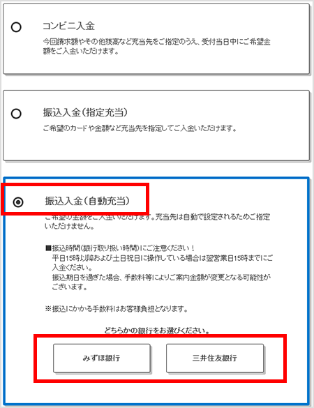 - ② 当社指定振込金融機関(みずほ銀行または三井住友銀行)を選択