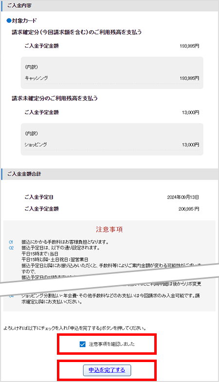 ※上記日時に入金処理が行われた場合、ご利用可能枠に反映するまでお時間いただくことがございます。