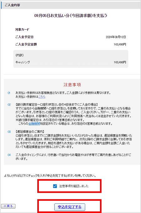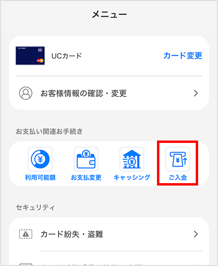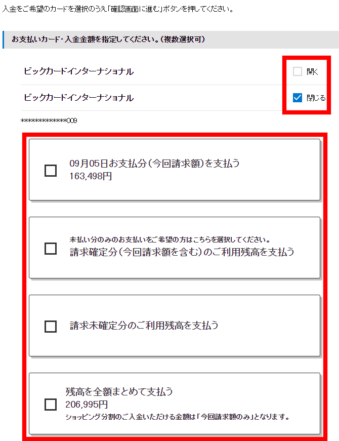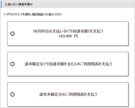 - ・ご入金後も引き続きカードのご利用が制限される場合や、クレジットカードの会員資格を取消させていただく場合もございますので、ご注意ください。