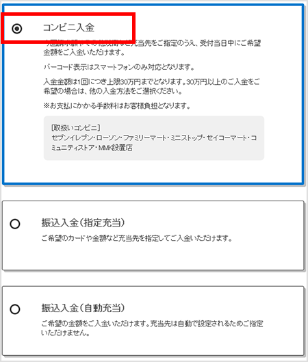 入金可能なコンビニと手数料の確認はこちら
