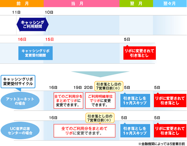 キャッシングリボ変更のお申し込み締切日とお支払開始日