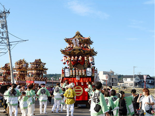 2025年7月20日・21日には、飯田町において「燈籠山祭り」が開催されました。公費解体の進行により空き地が広がり、大きく傾いた電柱も残る中、震災前と変わらぬ美しい姿の巨大な燈籠山(山車)が、2年ぶりに町内を巡行しました。このほか、市内では地震と豪雨による被害を乗り越え、秋祭りを復活させた集落もあるなど、復興に向けて伝統文化の再生を目指す取り組みが始まっています。