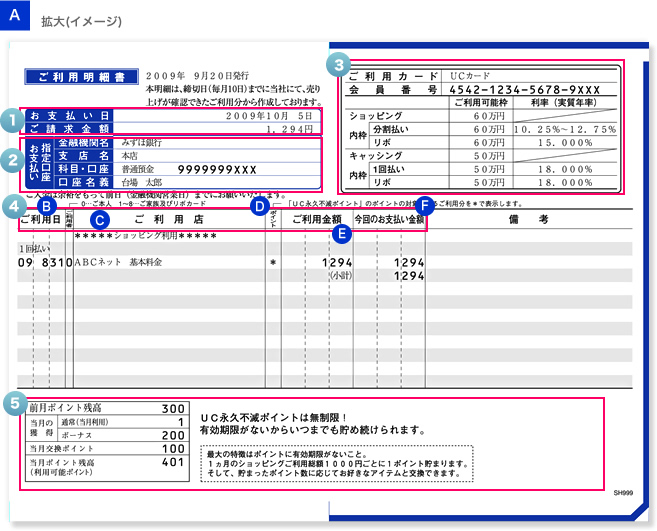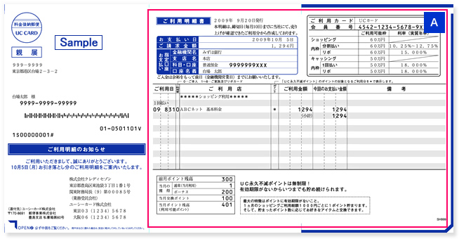 圧着はがきによるご利用明細イメージ【お客様氏名記載面】