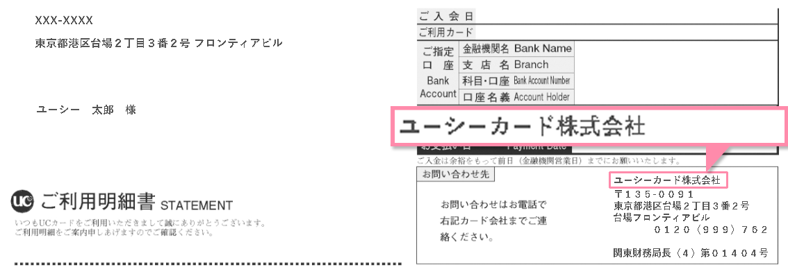 以下の社名が記載されている場合は、ユーシーカードグループ発行です。