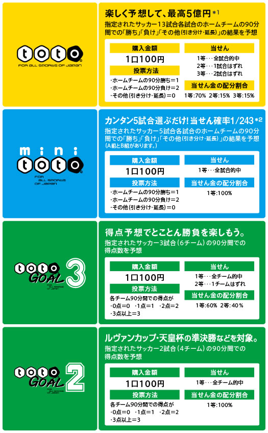 - *くじ売り場では、一部の「競技会予想」くじのご購入ができません。