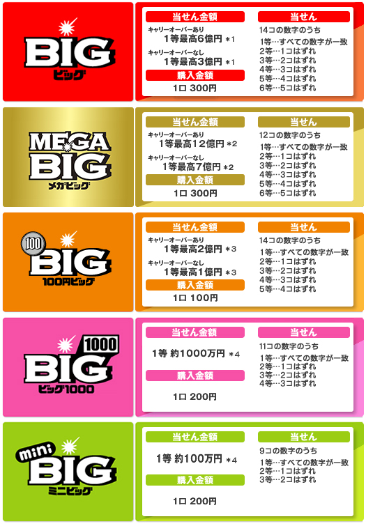 - *各くじの当せん金は、売上金額や当せん口数によって変動します。