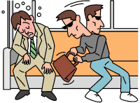深夜の電車内や駅のホームで、眠り込んでいる人から、貴重品や鞄を盗む手口。