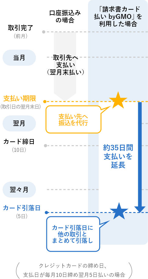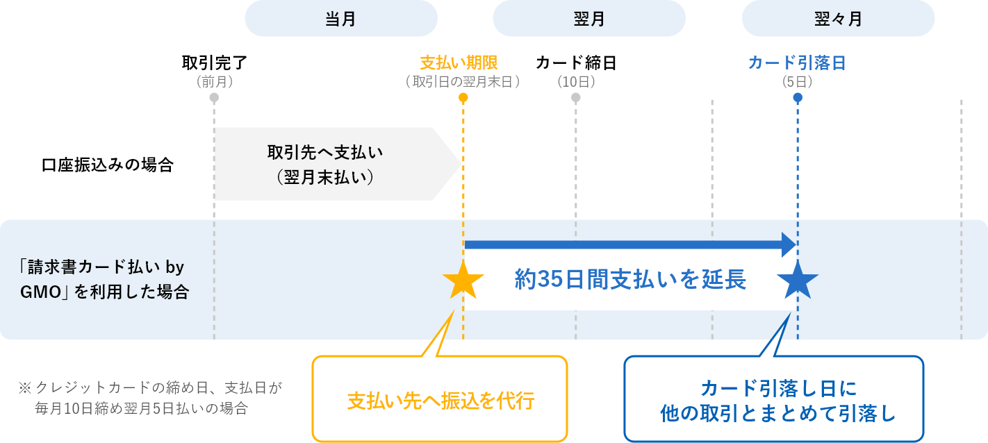 「請求書カード払い byGMO」のご利用により、借入なしで最大55日間(※)支払いを延長することができます。