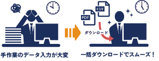 PDFやCSVのファイル形式で